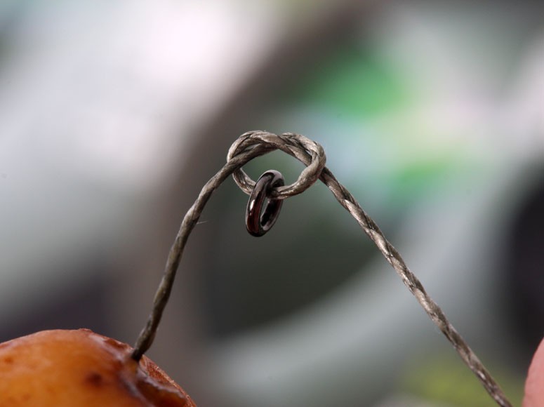 შემდეგ გავუკეთებთ სადავეზე რგოლს რომელსაც გავკვანძავთ სატყუარიდან დაახლოებით 2სმ-ის დაშორებით